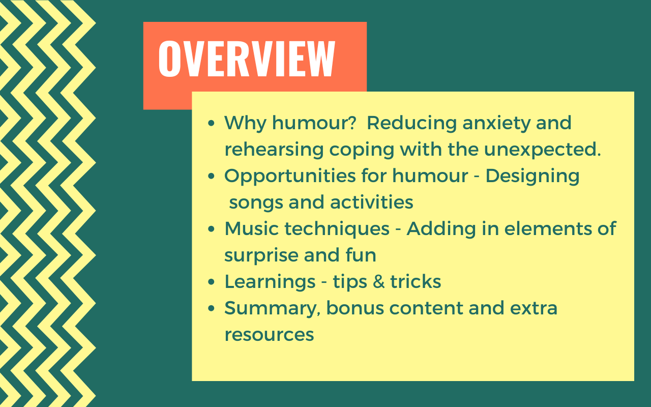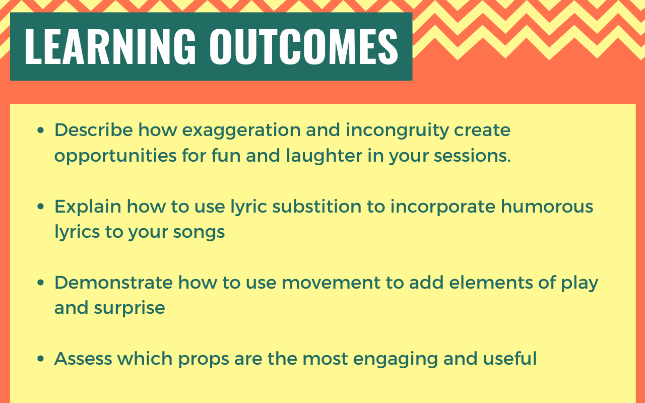 Ann & Janet discuss lyric substitution, incongruity and exaggeration and useful tools to increase creativity. They also discuss bringing fun and the unexpected into movement activities and how to use a range of music-based techniques to build suspense, increase tolerance for change and encourage laughter and engagement.