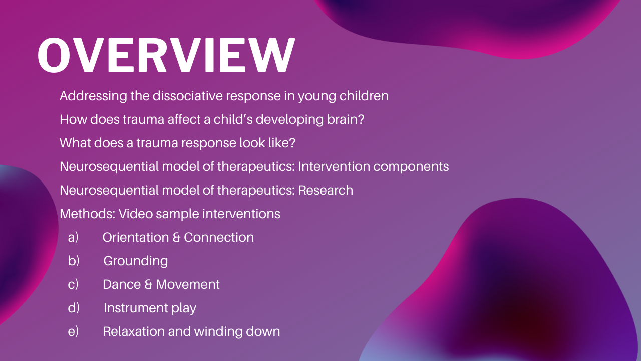 Sarah presents five key elements of a trauma-informed music therapy protocol, integrating rhythmic play, cross-lateral movement, and proprioceptive input to help children restore a sense of safety and connection.